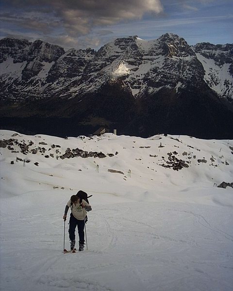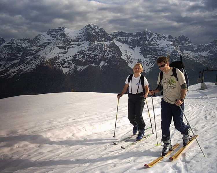 risaliamo lo skilift con gli sci in spalla per poi chiudere la gita con una