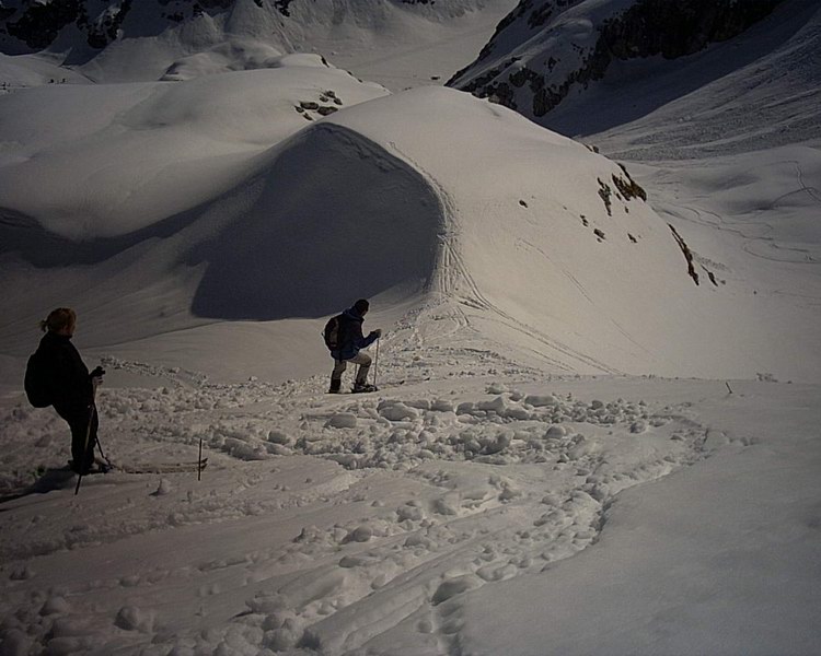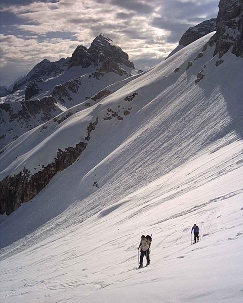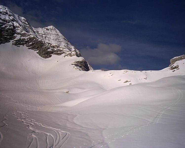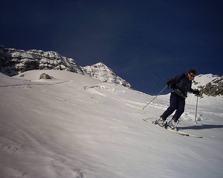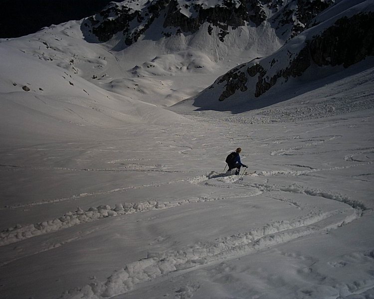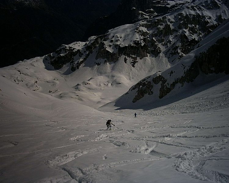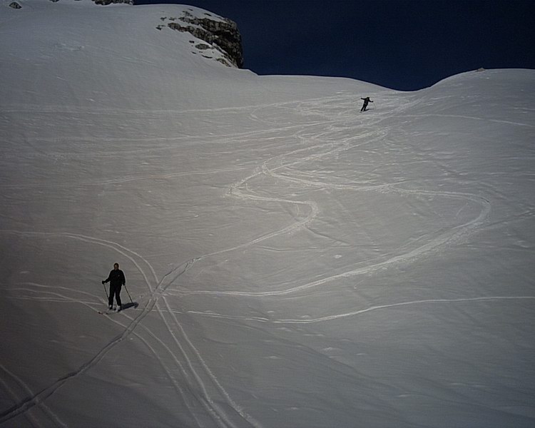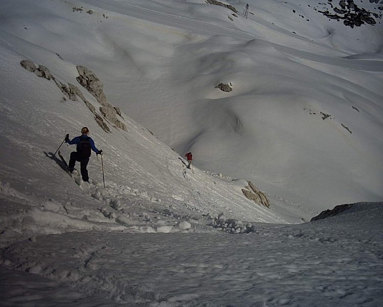 Salita tranquilla lungo la pista fino al rif. Gilberti (1850). Un breve taglio ci porta nel vallone che sale fino alla sella Ursic (2280). Sono le 9.30 e fa molto caldo. Dai pendii più ripidi ci sono dei piccoli distacchi spontanei. Per fortuna la meta è già raggiunta.
