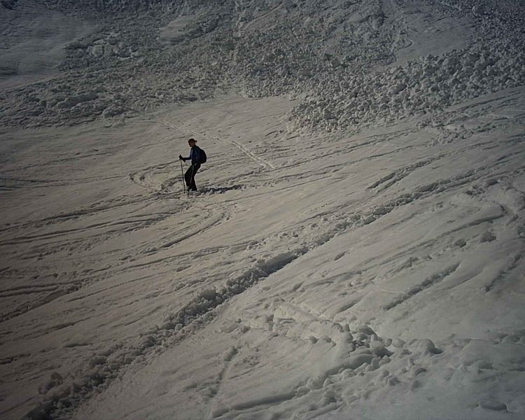 neve bagnata ma tutto sommato facile. Ci divertiamo a fotografarci l'un l'altro.