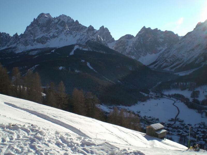 Sciata "comunale" sulle piste del monte Elmo nelle dolomiti di Sesto.