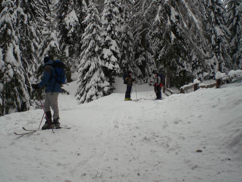 Dal lago proseguiamo piatti verso est fino ad entrare nel bosco de rudo dove i tornanti della stradina si tagliano allegramente nella neve polverosa.