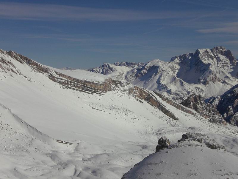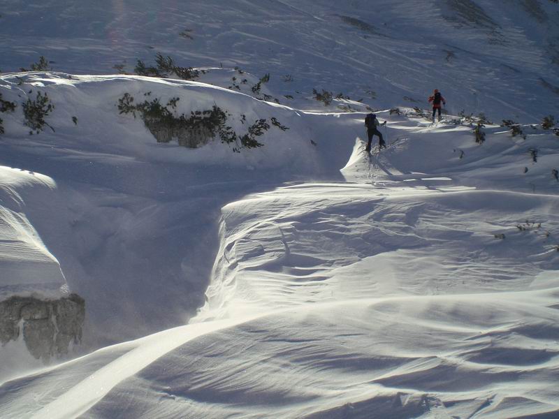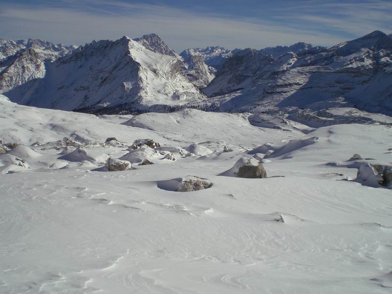 Il vento tira raffiche gelide. Il traverso dalla forcelletta qta 2.182 alla forcella del Lavinores 2.294 è tutto un'onda. Il vendo ha formato un vero e proprio "mare mosso"