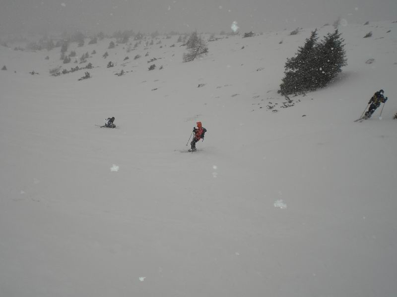 Discesa verso ovest su pendenza ideale. Purtroppo la neve era difficile ed un po' crostosa.