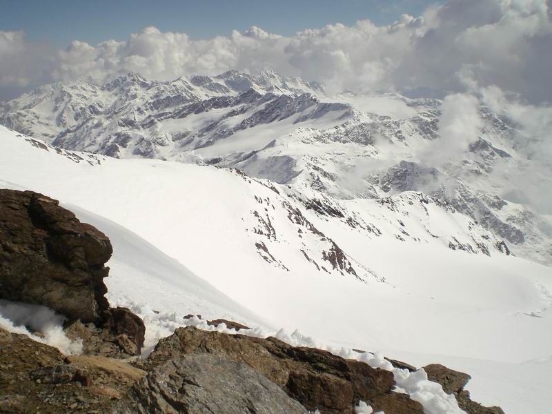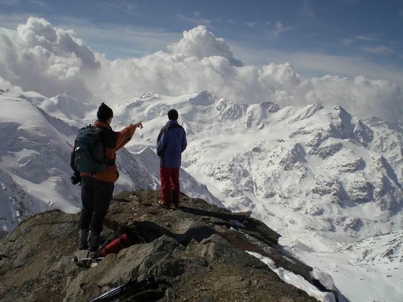 La vista è a dir poco spaziale su tutto il parco nazionale dello Stelvio e ben oltre. Forse distinguiamo anche il Bernina pensando alle contemporanee imprese di Luca e Francesca.