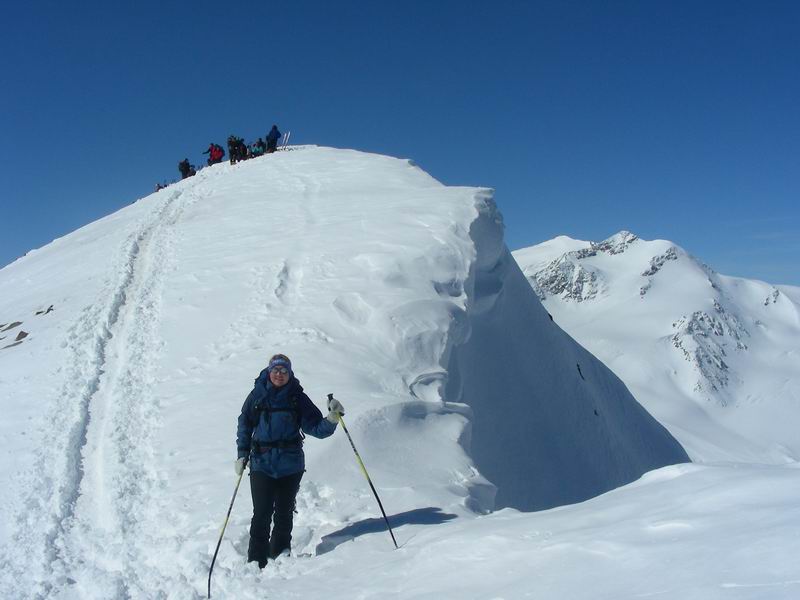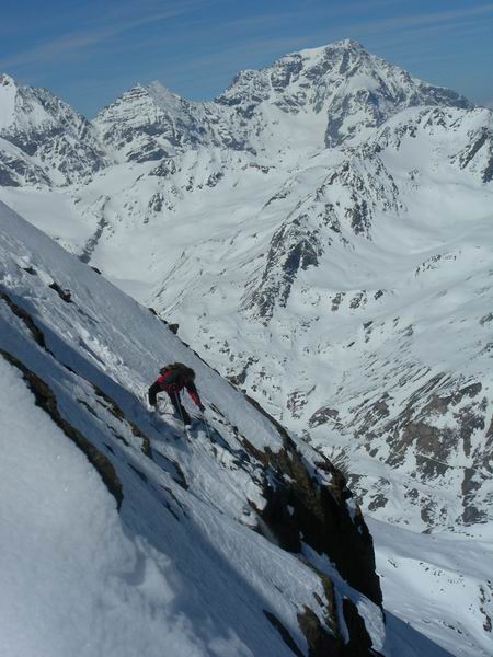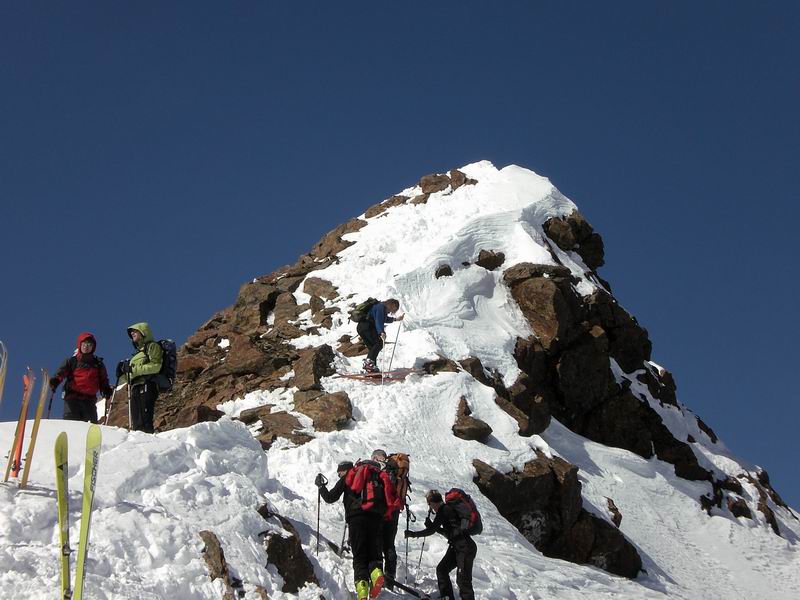 Si punta tutto a sud e con ampie svolte arriviamo sulla selletta d'attacco alla terza cima venezia. Qui tutti lasciano gli sci e proseguono a piedi lungo la cresta.