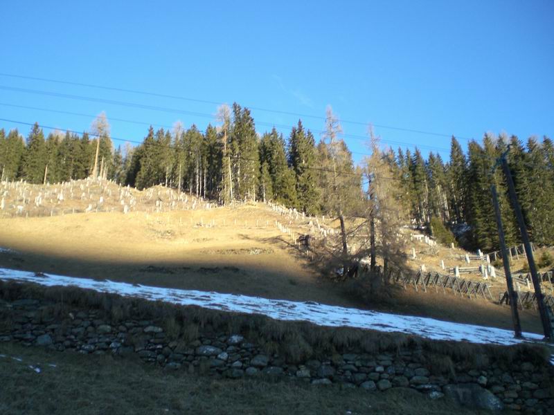 Con un traverso ad ovest arriviamo sopra ai paravalanghe che aggiriamo a sinistra.