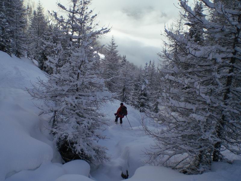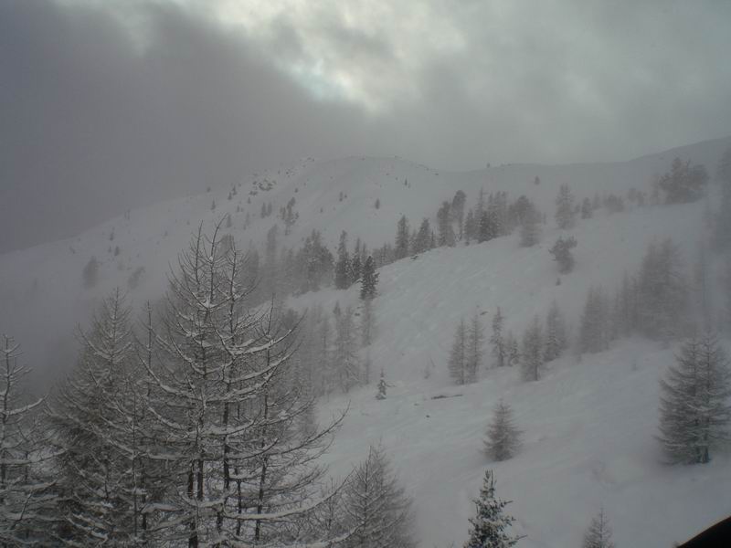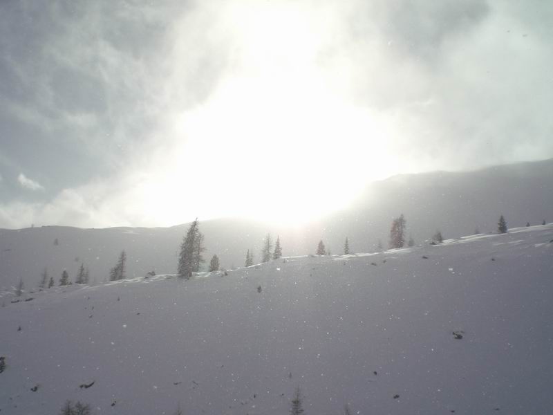 Saliamo fino a S.Maddalena e lasciamo l'auto alla partenza dello skilift (1.460). Tempo per uno strudel e poi via sotto la nevicata.