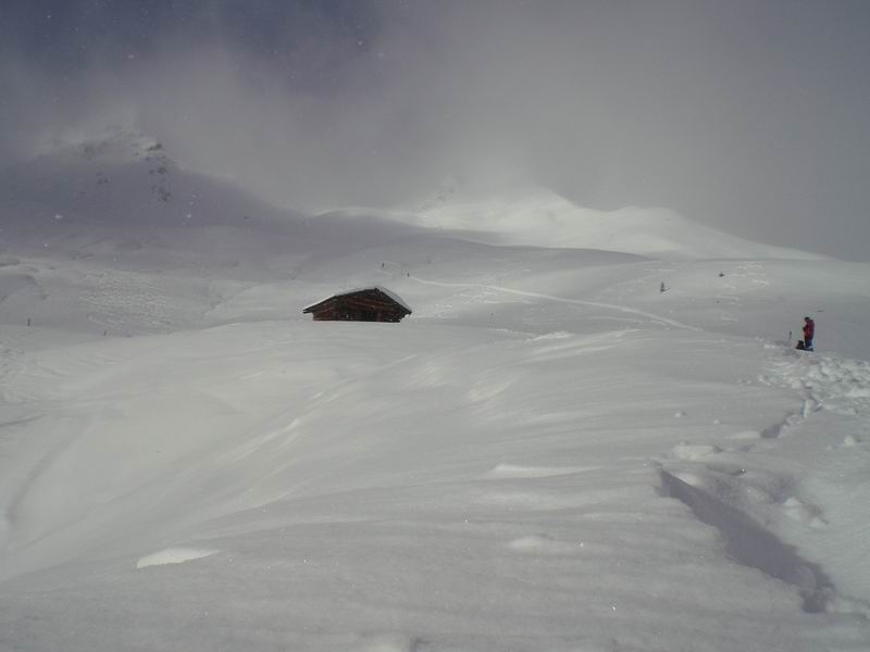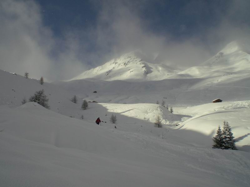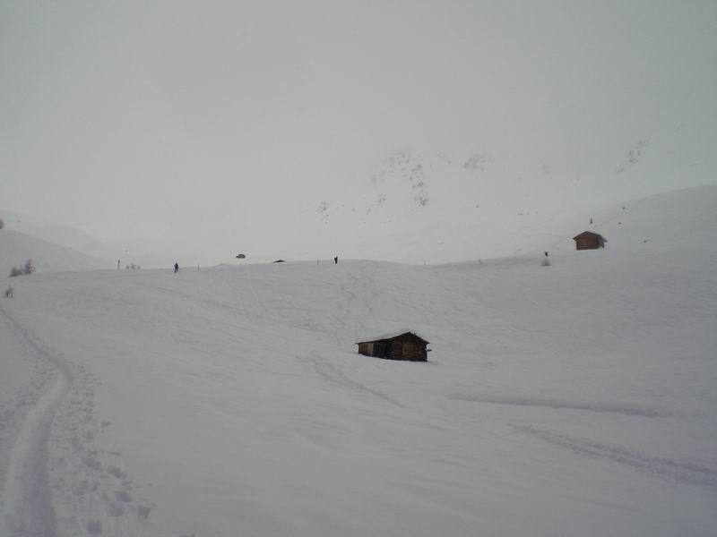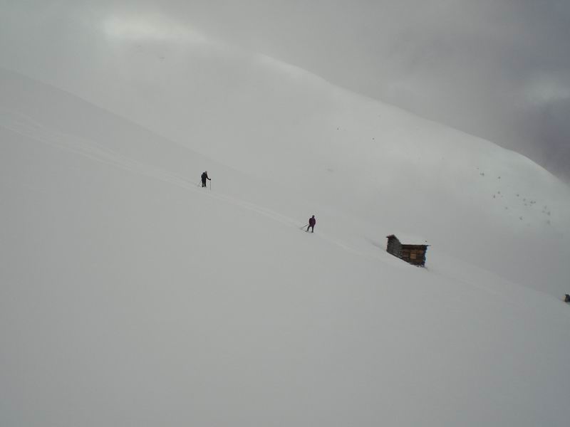 Contiamo n.6 spazzaneve che scendono ovviamente tutti al contrario. Scendiamo e risaliamo al passo di M.Croce. Qui valutiamo la possibilità di una gita verso la Nemeshuette.