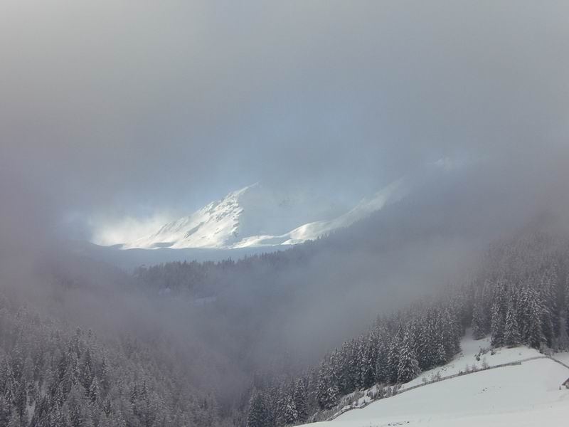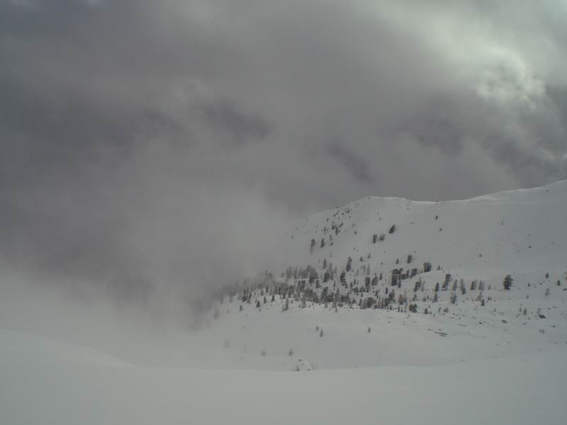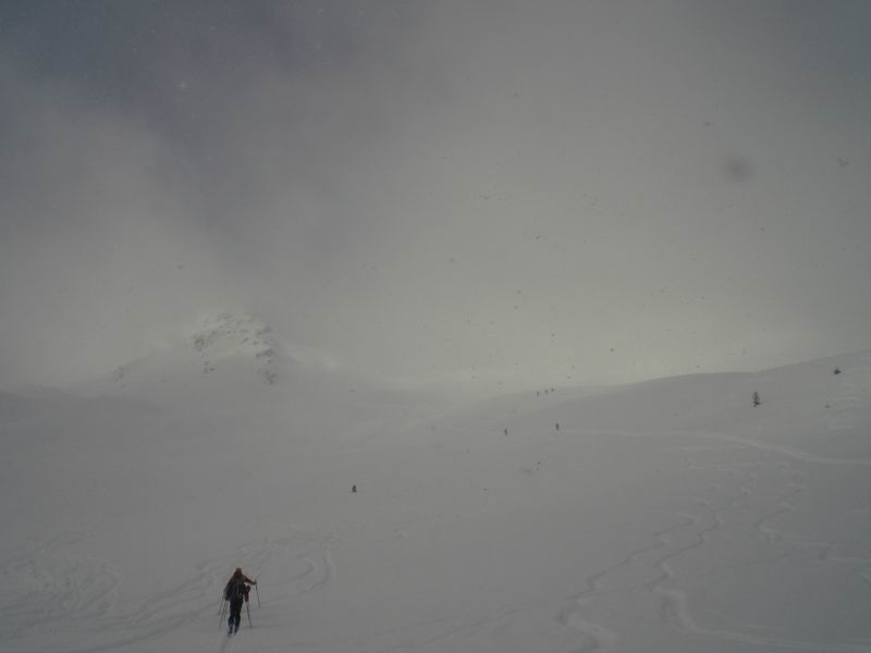 Meteo: nevicata e nuvole basse per tutta la salita e la prima parte della discesa. Poi qualche timido squarcio di sole.