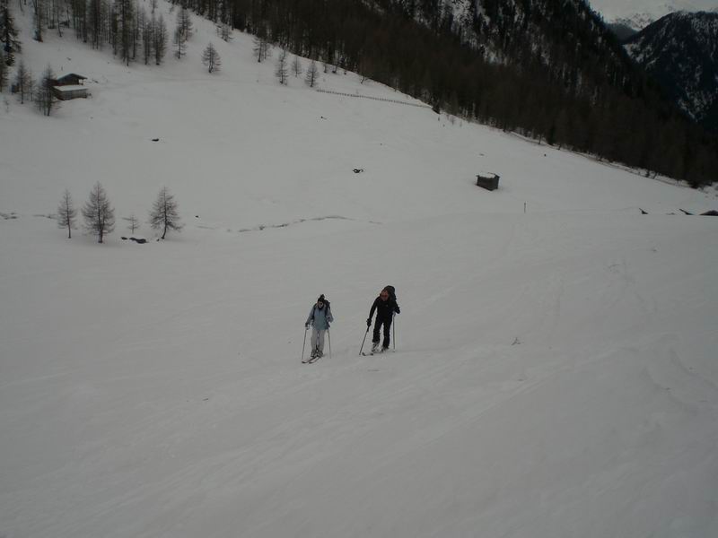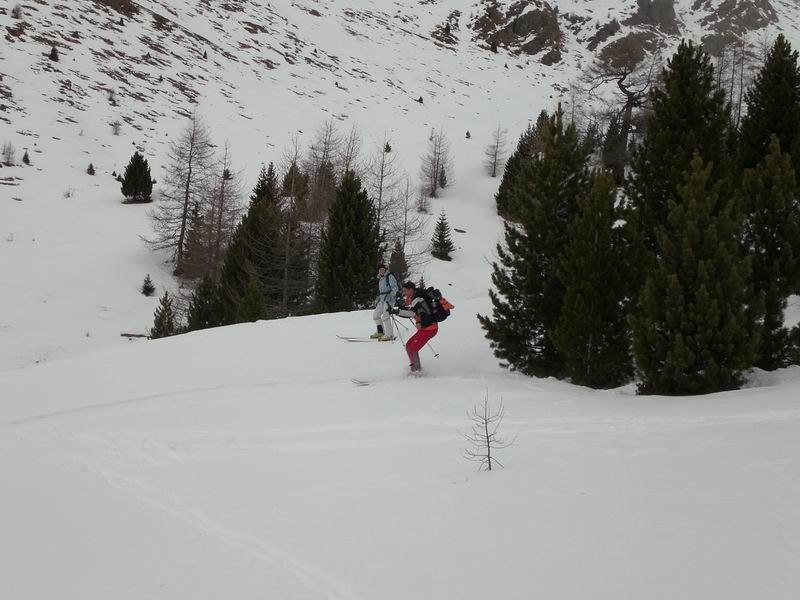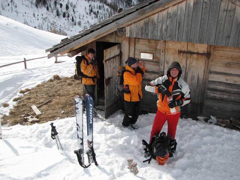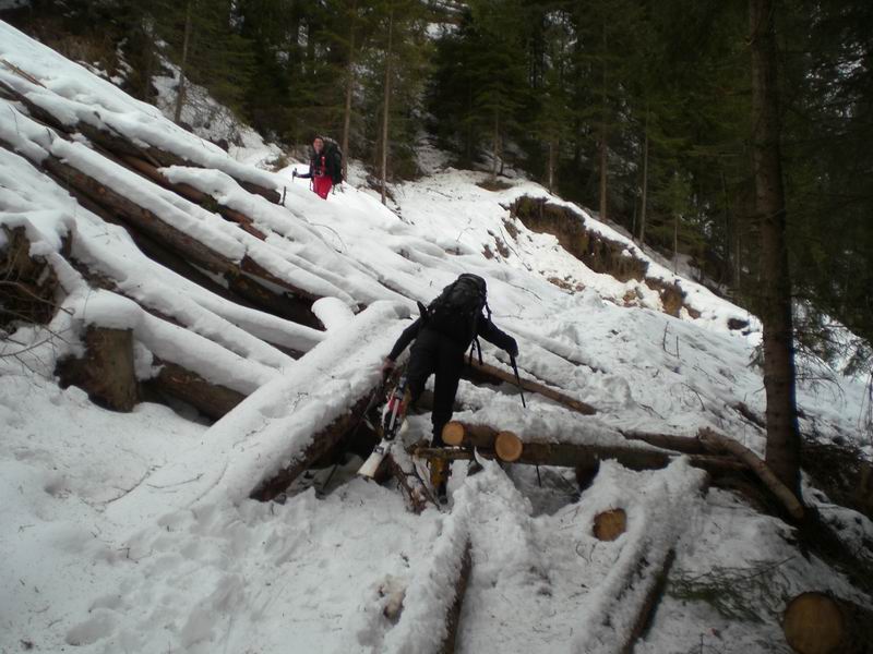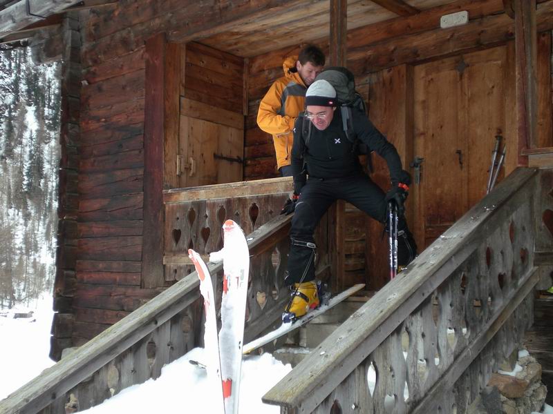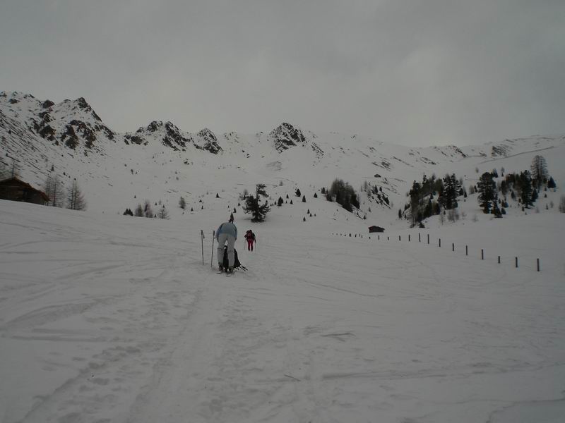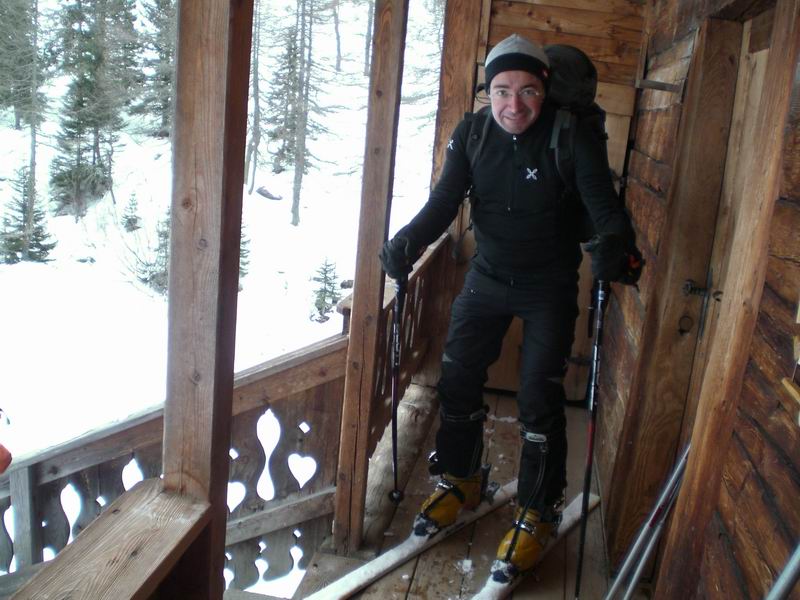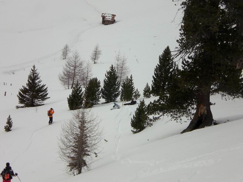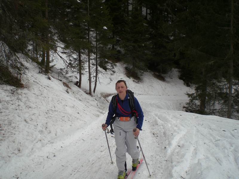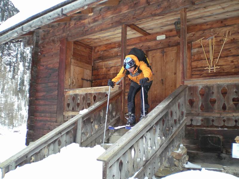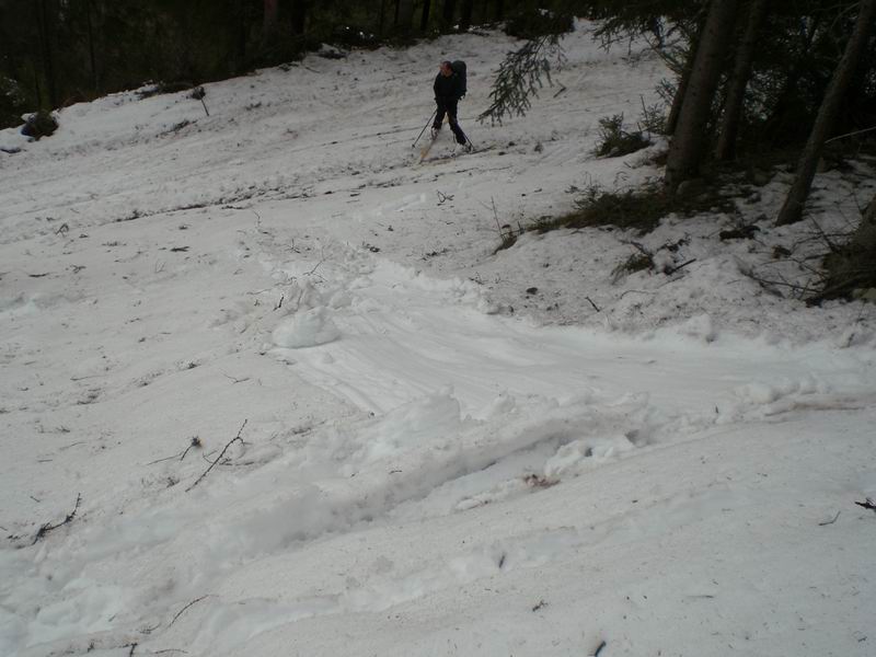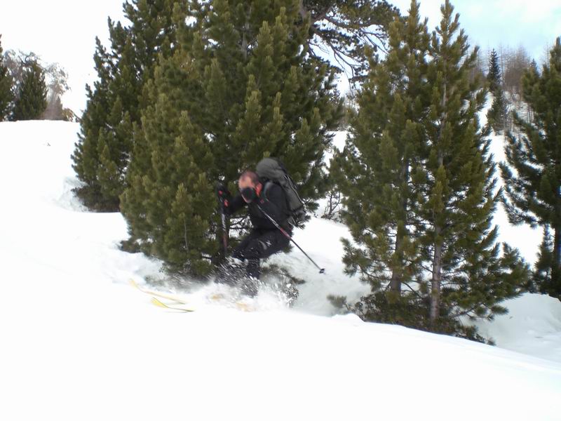 Ritorno in neve crostosa con brevissimi tratti di polvere. Bene la stradina nonostante le ramaglie.