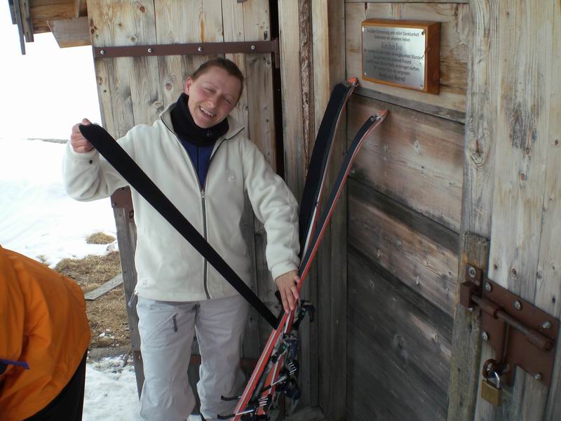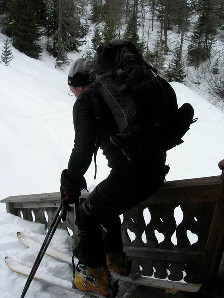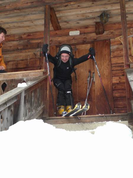 Sosta alla Schucher Alm dove Fox e Charles danno dimostrazione di come si scia anche su scale in cemento.