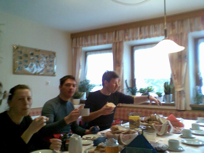 Dopo una colazione ufo a S.Maddalena scendiamo in auto a S.Martino dove Robi Furgon, Dadi e un'altra coppia di amici avrebbero dovuto aspettarci per far la gita assieme. In realtą non si poteva lasciar in tavola tanto ben di Dio quindi abbiamo fatto 2 gruppi separati.