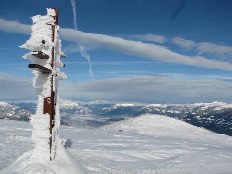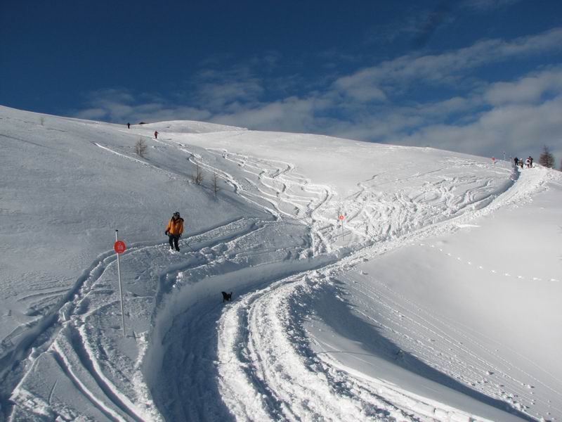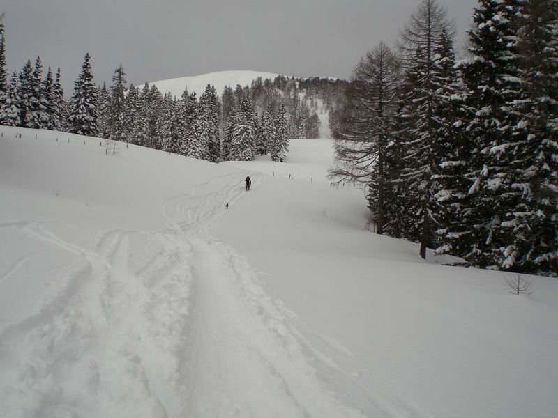 Passato il pianoro della pista da fondo saliamo ancora verso le antenne del Dobratsch.