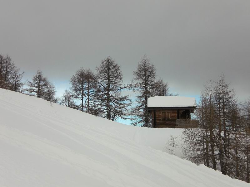 Neve dura, crostosa a tratti ghiacciata. Siamo a quota 950 e probabilmente gli scorsi giorni qui ha nevischiato se non piovuto. Ieri durante la giornata caldo e poi freddo di sera.