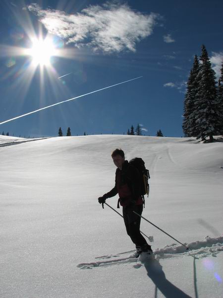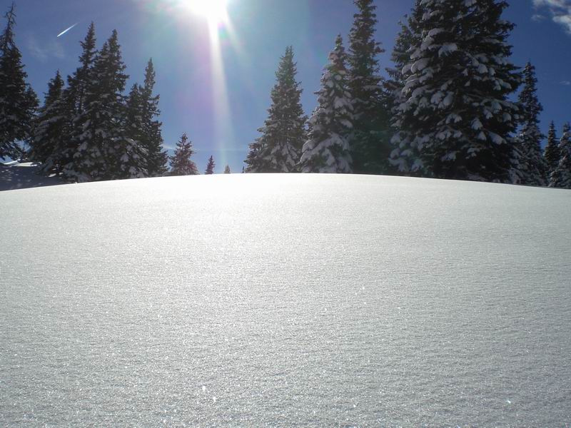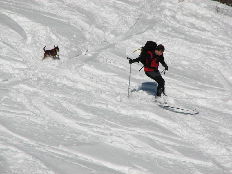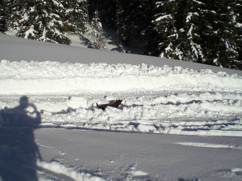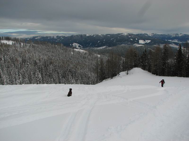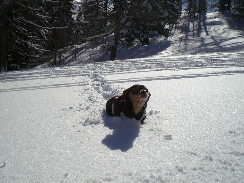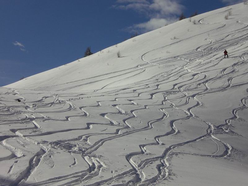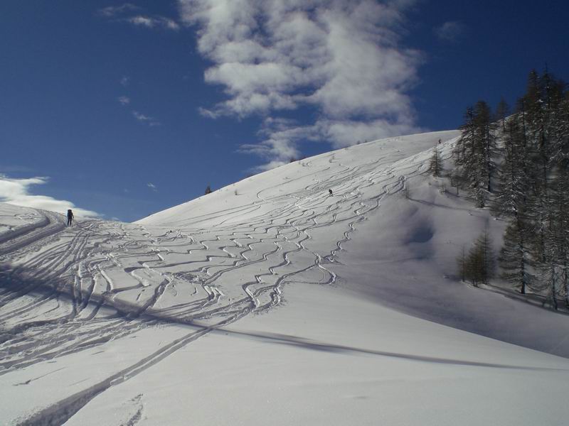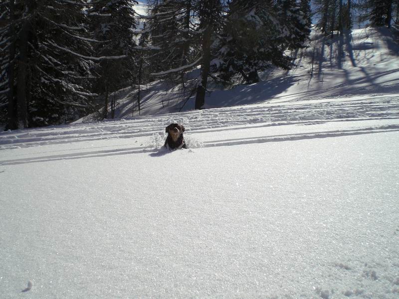 Saliamo e dopo una 20 ina di minuti la neve migliora, sempre pił, fino a diventare polverosa.