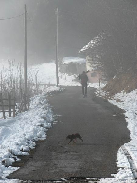 Ore 8.10 sci ai piedi iniziamo a salire. Con noi anche Roger alla sua prima uscita invernale.