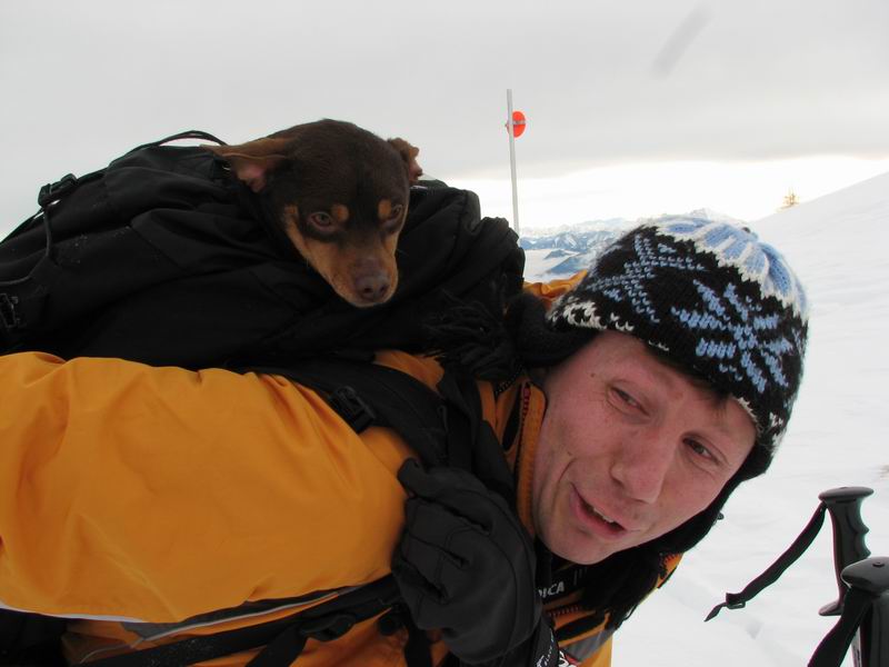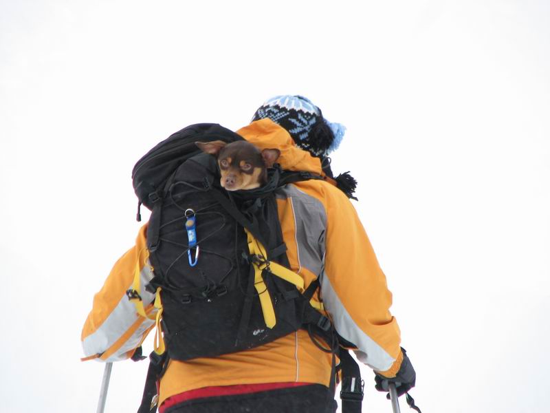 Gli ultimi metri li faccio con Roger al calduccio in zaino.