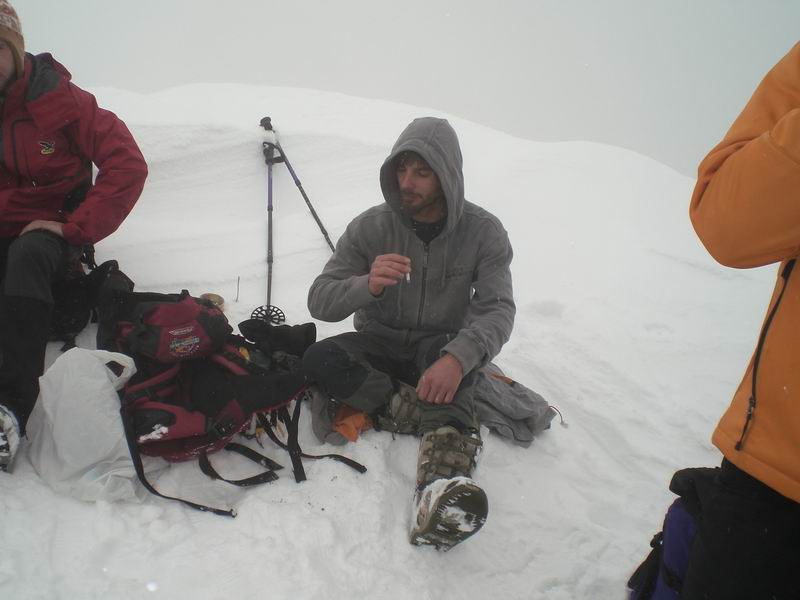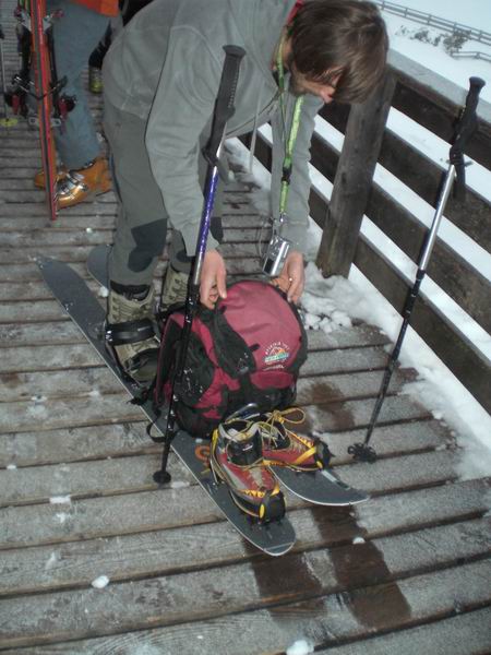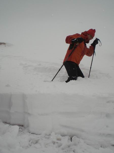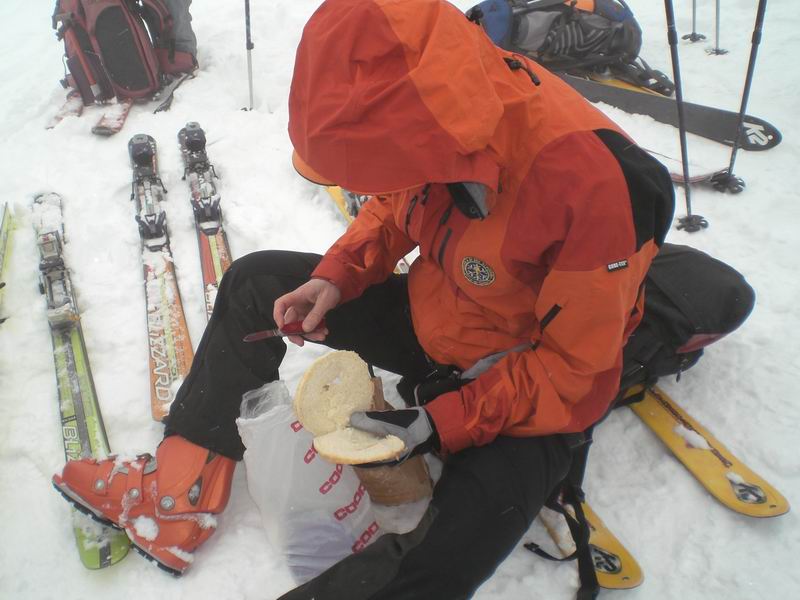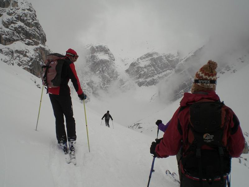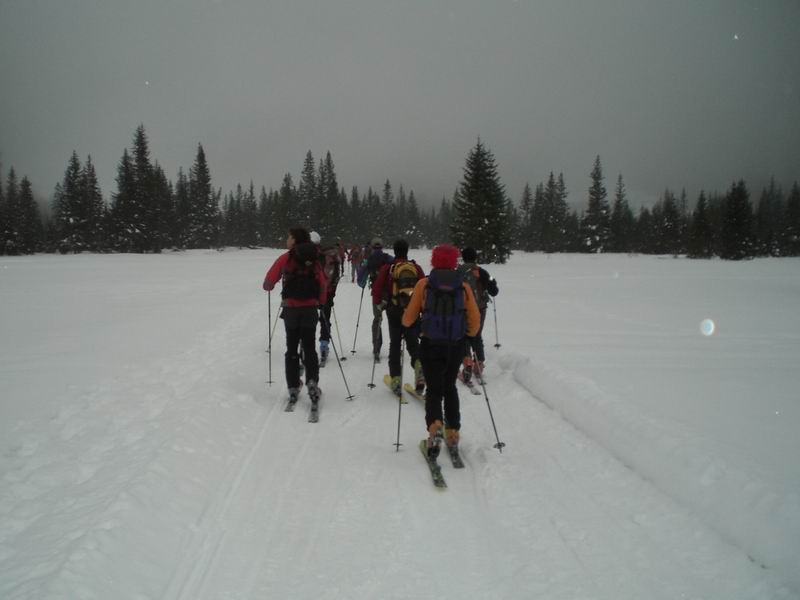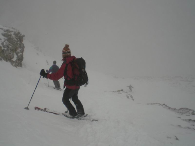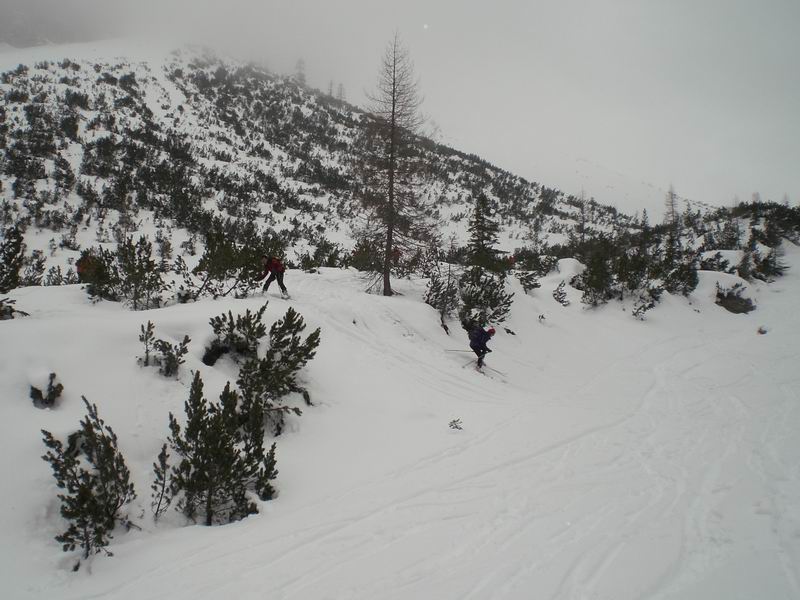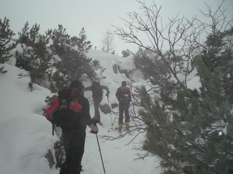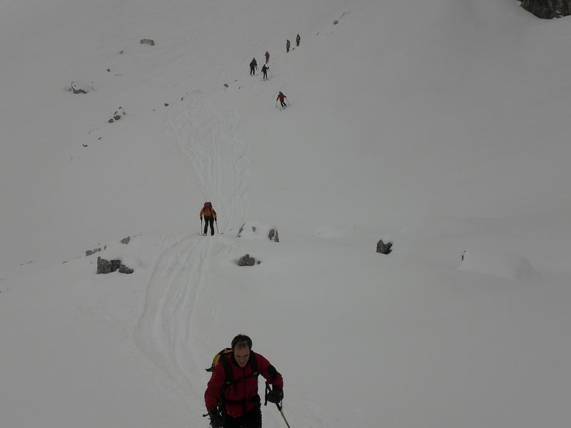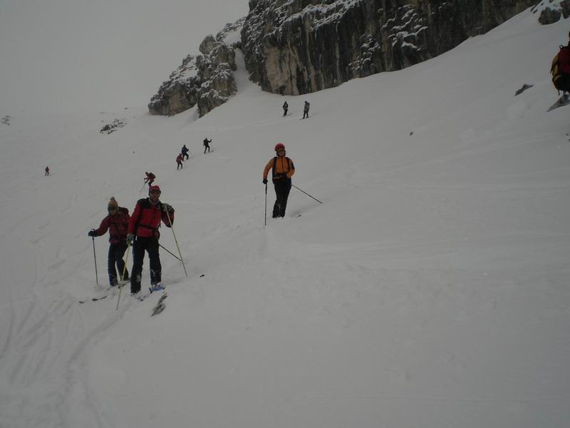 In discesa qualche breve tratto di neve sciabile ma generalmente crosticina e