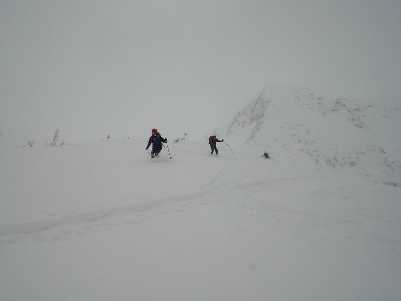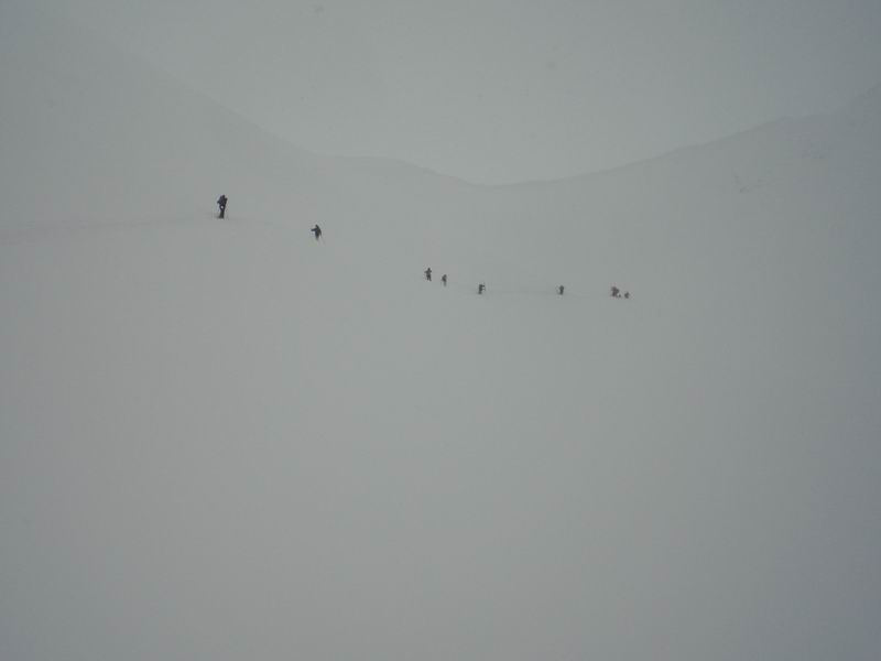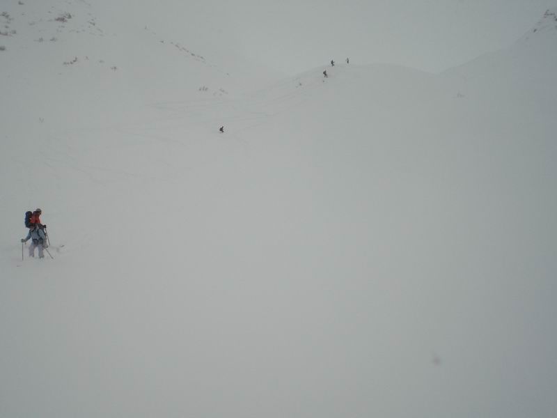 Da qui la visibilità è ridotta. Saliamo fin sotto la forcella Plumbs (1.976).
