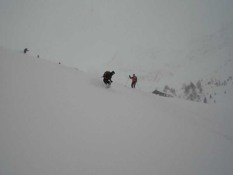 Dietrofront e divertentissima discesa in neve fresca e polverosa fino alle ginocchia.