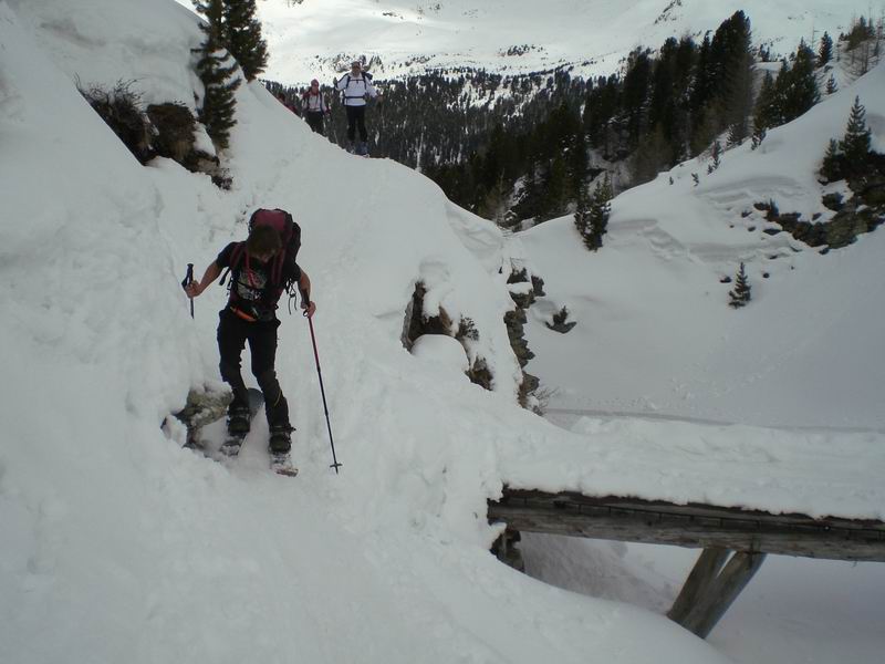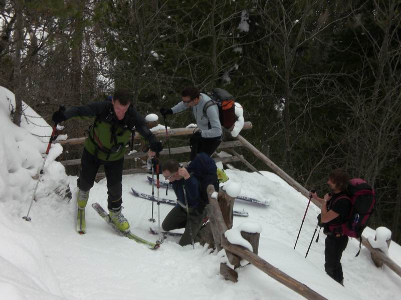 con gli sci ai piedi, fino a raggiungere il rifugio Roma (2.276).