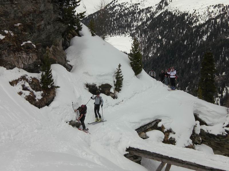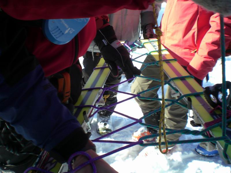 Scesi ancora un po' costruiamo una barella di fortuna.