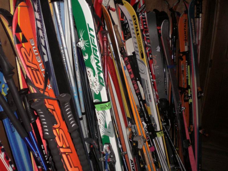 Andrea, nella parte del fratturato, mette a disposizione gli sci nuovi e le