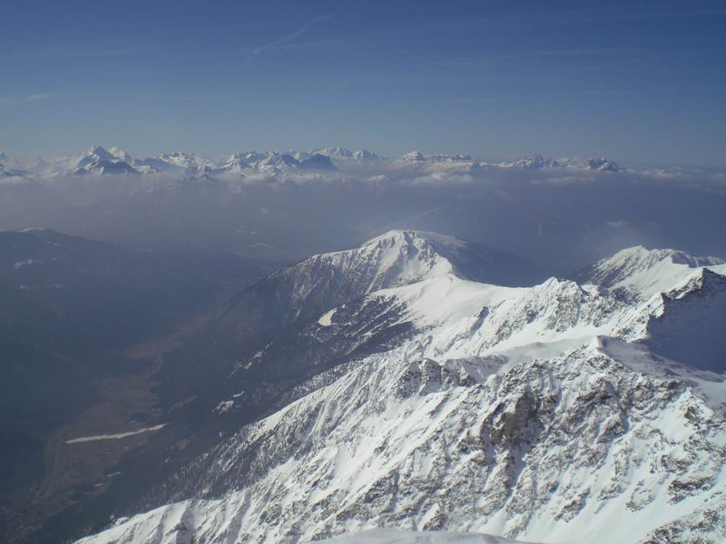 In cima vista immensa su tutte le dolomiti: tre cime di Lavaredo, Marmolada, Pelmo, Croda rossa ma anche verso le alpi austriache e svizzere.