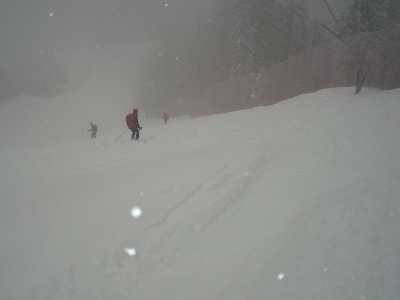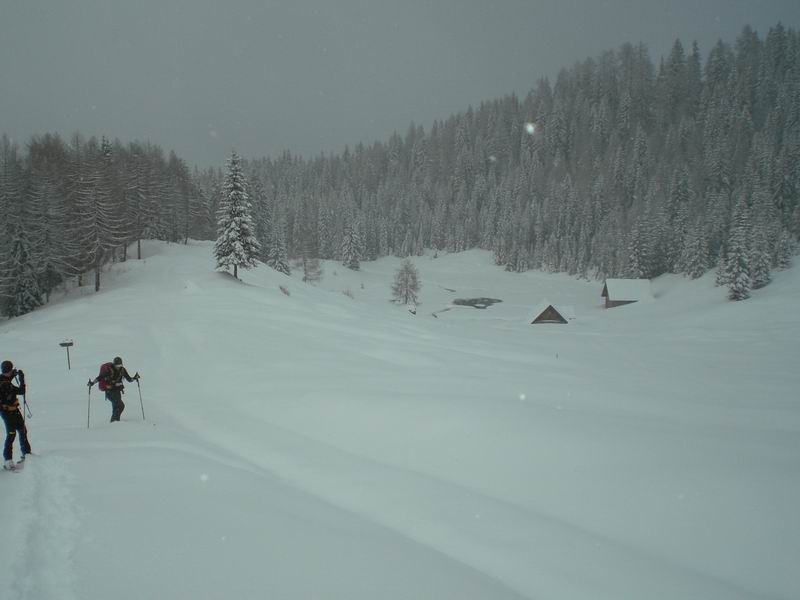 Partenza ore 10.00 dal piazzale dell'ovovia. Classica salita lungo il sentiero dei pellegrini sotto una nevicata a tratti anche intensa. In cima il rifugio di Jure è chiuso. Scendiamo lungo la pista stracolma di neve fresca.