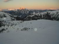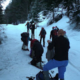 Io sono davanti con Pietro e Sandra, la più in forma delle ciaspolatrici. Piano piano risaliamo la rampa con la speranza di vedere il rifugio ma dietro ci aspetta un altro pianetto ed un'altra rampa. Alle nostre spalle il gruppo comincia ad essere veramente stanco. Le diagonali sul ripido con le ciaspole non sono propiamente comode. Oltre alla fatica si fa sentire il peso psicologico dell’ambiente, il sole sarà alto ancora per poco, fa freddo, tira un po’ di vento e del rifugio nessuna notizia.