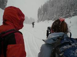 Dopo un po' inizia a nevicare. Risalendo la pista proviamo l'ebrezza della