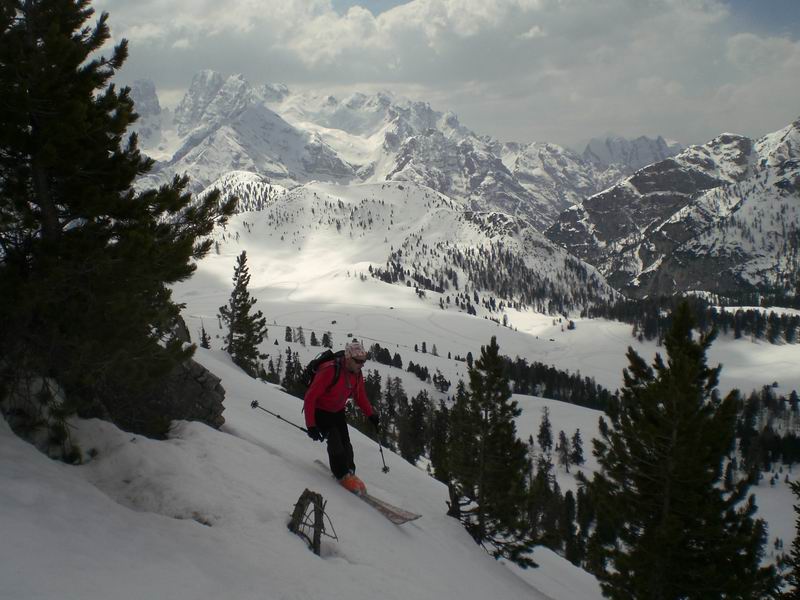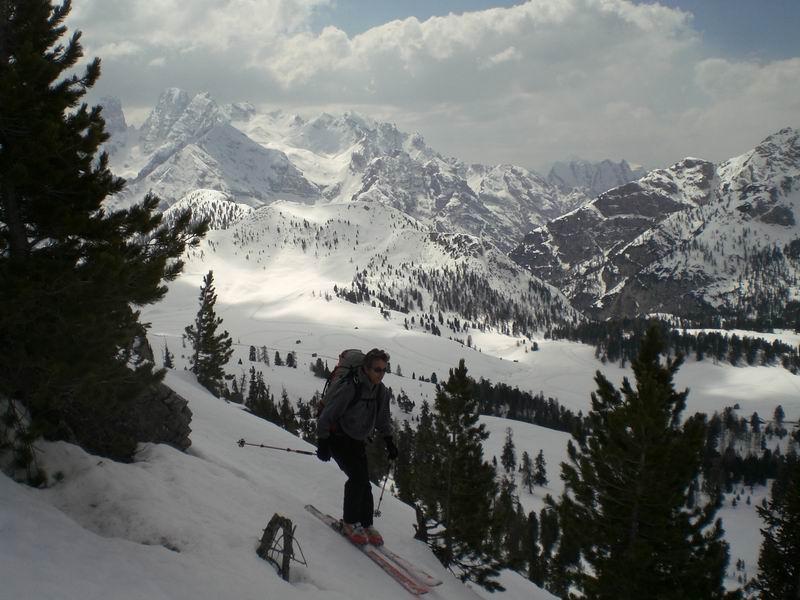 Con calma saliamo in auto fino al Rif. Pratopiazza e alle 8.30 partiamo sci ai piedi verso il picco di Vallandro (durrenstein).