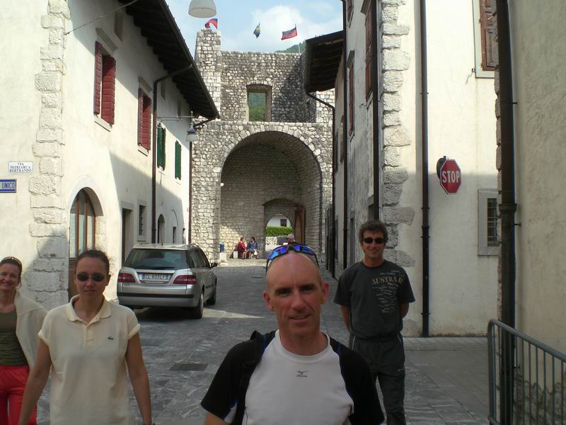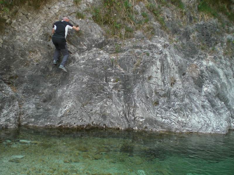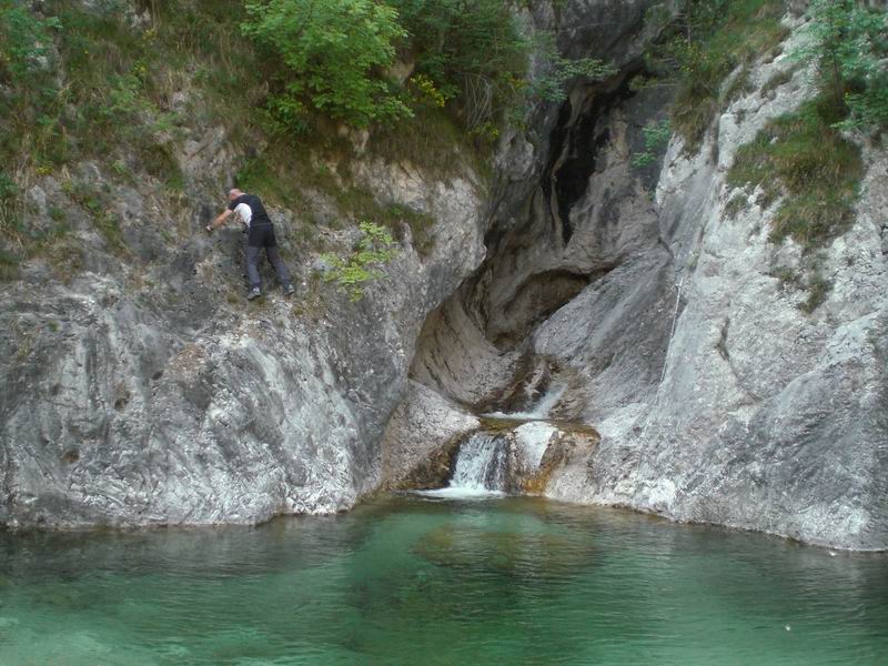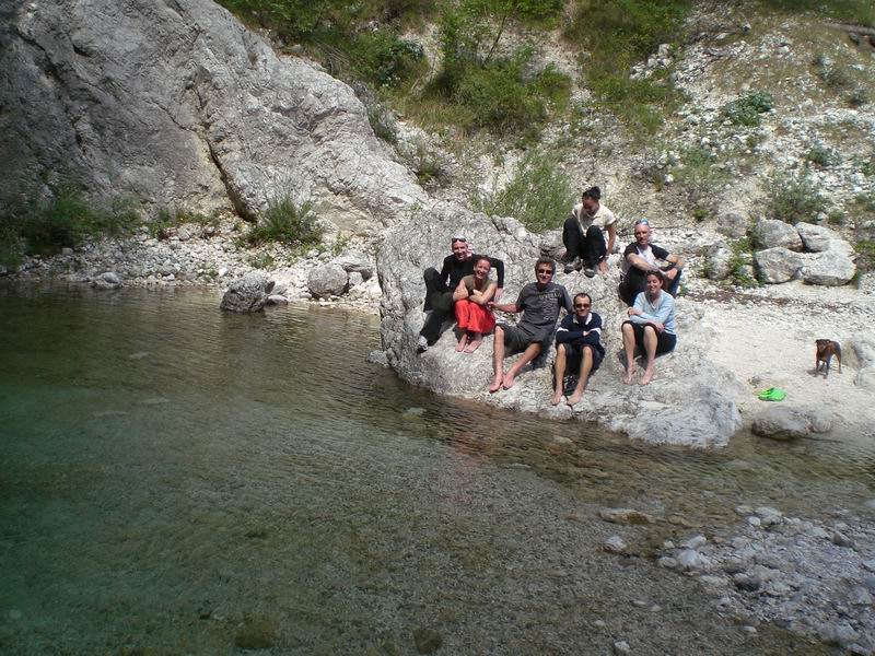 Scendiamo a Resiutta per l'immancabile pollo con patatine. Gozzovigliamo un po' lì.... a qualcuno prende anche un po' di stanchezza (Riccardo!!!) ma la gita non finisce... facciamo un salto alla pozza d'acqua verde della cascatella di Moggio per rinfrescare le gambe. Quindi passeggiata a Venzone con tanto di gelato.