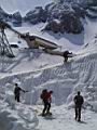 A 3/4 della pista bisogna attraversare la strada creata per le ruspe. Poi si riattraversa la muraglia di (5-6m) o poco prima dell'arrivo dell'ovovia oppure come ha fatto Fox, aggirando a sinistra la casetta della funivia, scendendo qualche metro in conca prevala e risalendo sulla nuova stazione.
