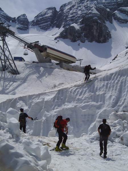 varie proposte come al solito durante la settimana..... ma una decisione definitiva non arriva mai. Solo sabato pomeriggio Fox sentenzia ore 4.00 al bowling si va al Gilberti e poi si valuta forato o ursic. Previsto coperto in nottata ovvero nessun rigelo che con zero termico a 3200m significa poltiglia ovunque. Allora si va a Sella Nevea posto solitamente fresco e con a disposizione la pista chiusa che dovrebbe avere ancora qualche lingua verso valle.