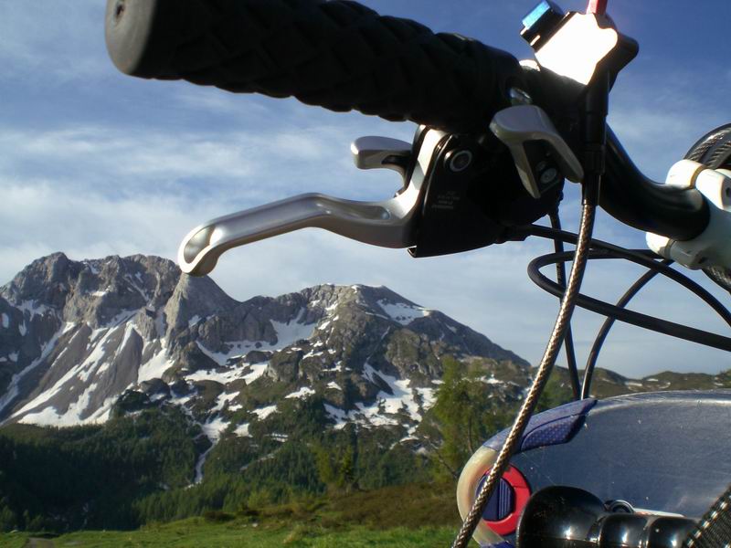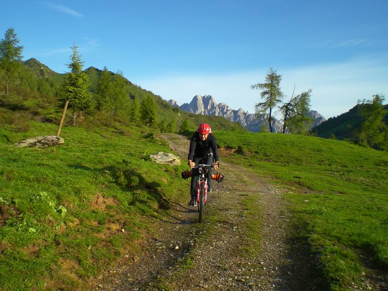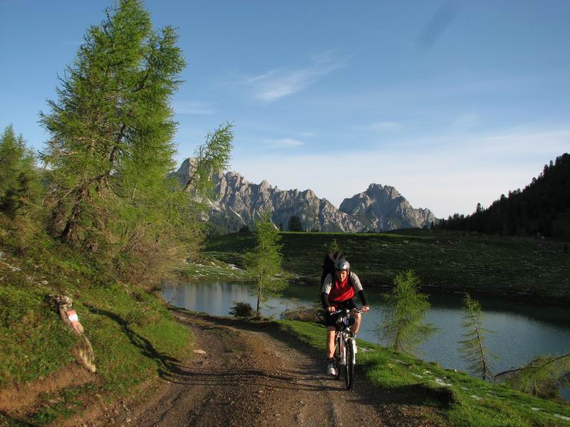 Pedaliamo fino alla casera Razzo, acquisto formaggio e poi si scende a Sauris di sopra. D'obbligo il prosciutto crudo locale e già che ci siamo anche una fetta di frico.