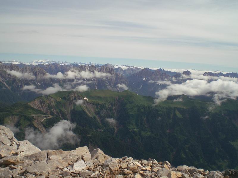 Magnifico panorama che si estende dalle dolomiti (Marmolada, Sorapiss, Tre cime) alle vedrette di Ries (M.Magro, Hochgal), alle vette austriache (Venediger, Gross Glockner), per tornare in carnia (Amariana, Montasio, Canin) fino alla Slovenia (Triglav) ed in fondo si intravede il golfo di Trieste.