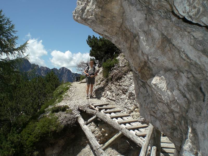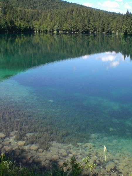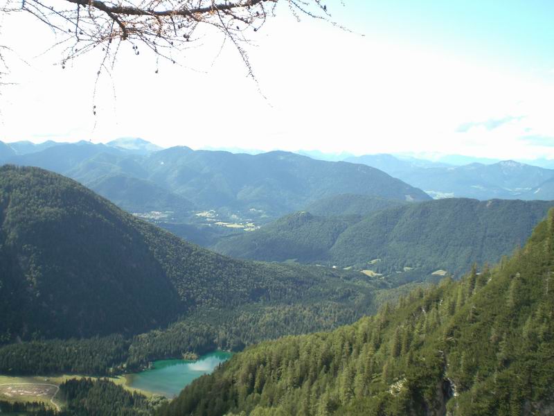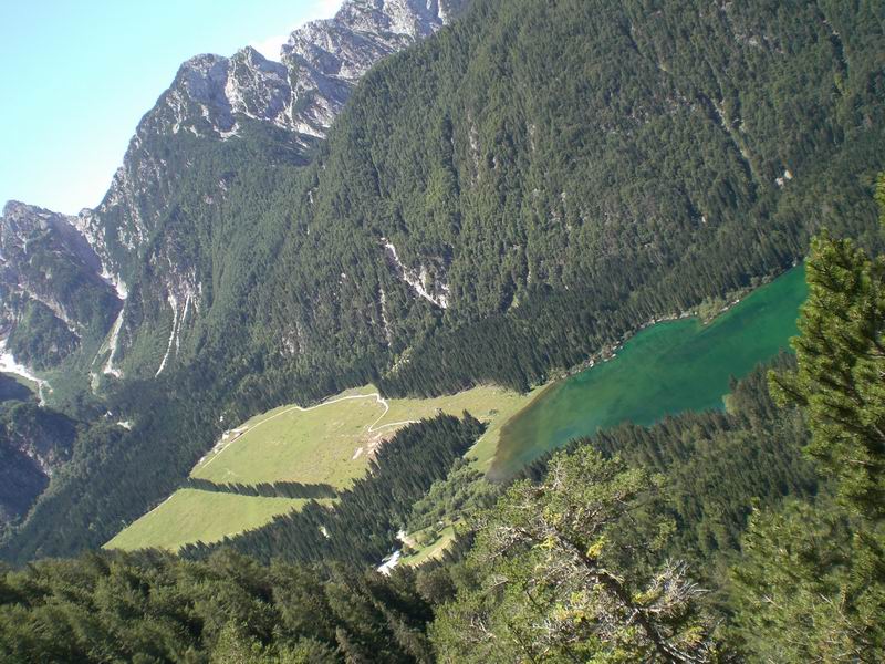 Lasciamo l'auto al lago inferiore di Fusine nel parcheggio del ristorantino. Entriamo subito nel bosco seguendo il segnavia 512 . Il sentiero č comodo, al fresco e con squarci panoramici sui limpidissimi laghi sottostanti e sulle possenti pareti del Mangart.