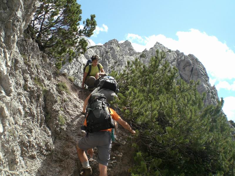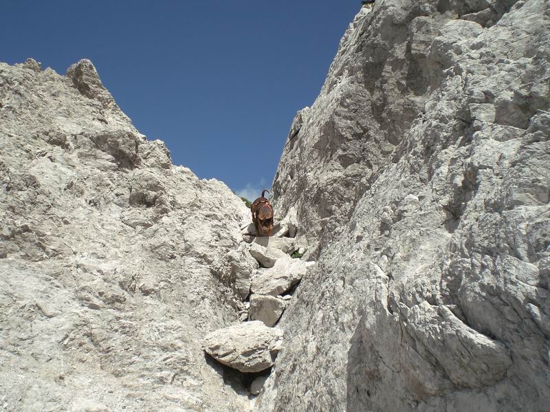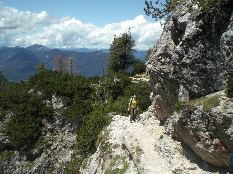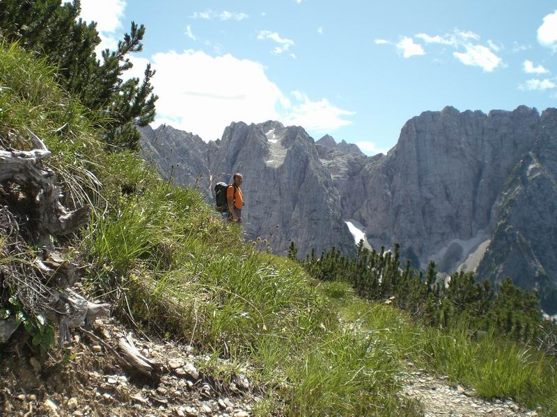 Raggiunta la malga Ponza (circa 1h15') saliamo su comodissimo sentiero nella suggestiva conca sotto la "Porticina". Raggiungiamo 2 sellette da dove si vede la vallata slovena del tamar e l'omonimo rifugio. Per sentierino un po' pių impegnativo (sfasciumi) si raggiunge la sella pių alta (porticina) appena sotto la cima di ponza piccola.