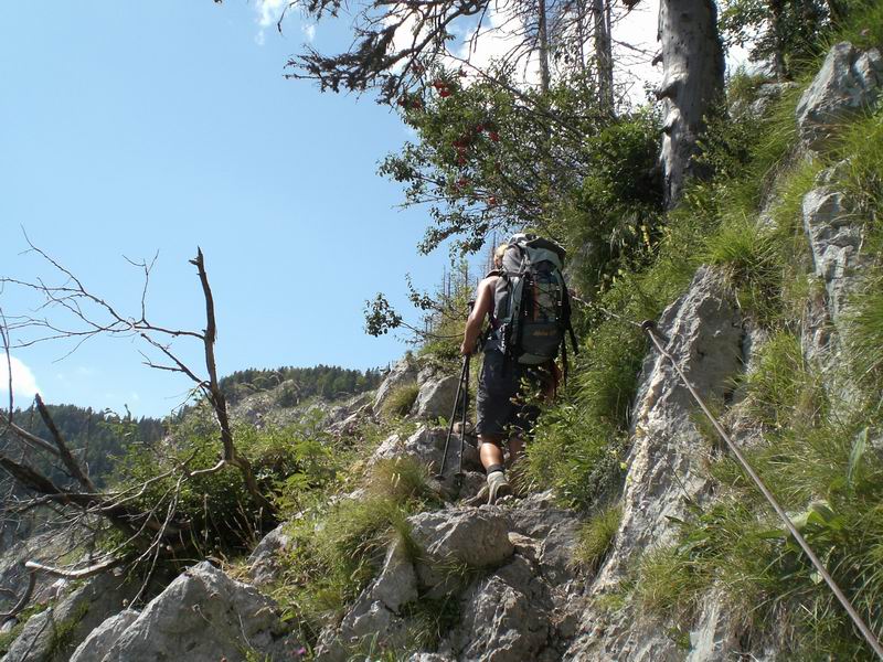 Il sentiero ha qualche passaggio agevolato da cavetti