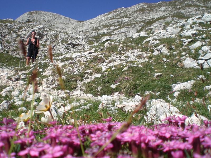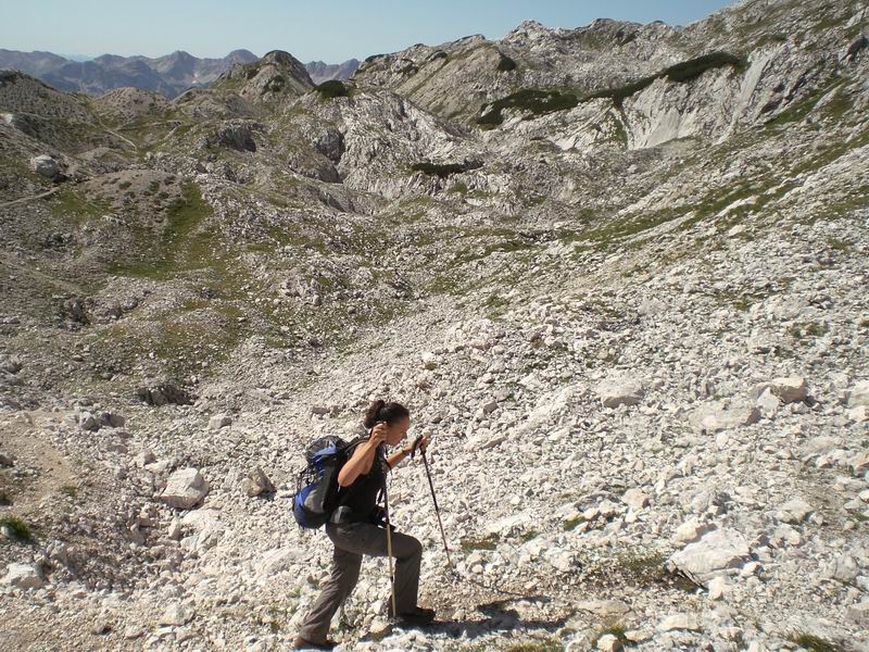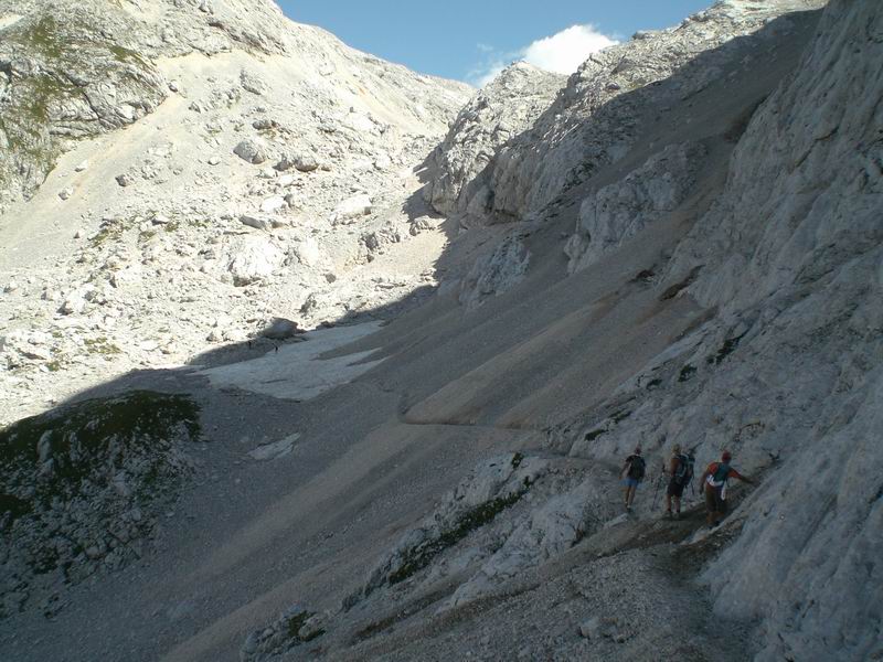 Ancora in discesa ritorniamo, fischiati dalle marmotte, fino al Koča pri triglavskih