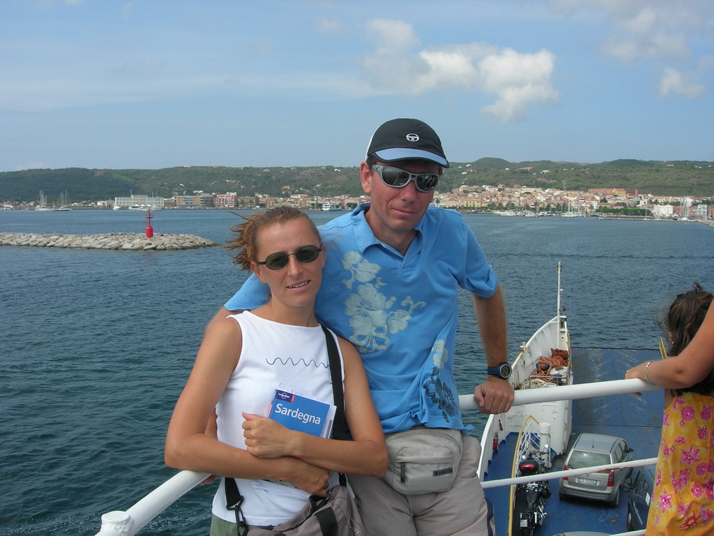 Ore 11.45. A Calasetta mettiamo l'auto sul traghetto che ci sbarca a Carloforte sull'isola di S.Pietro. |
