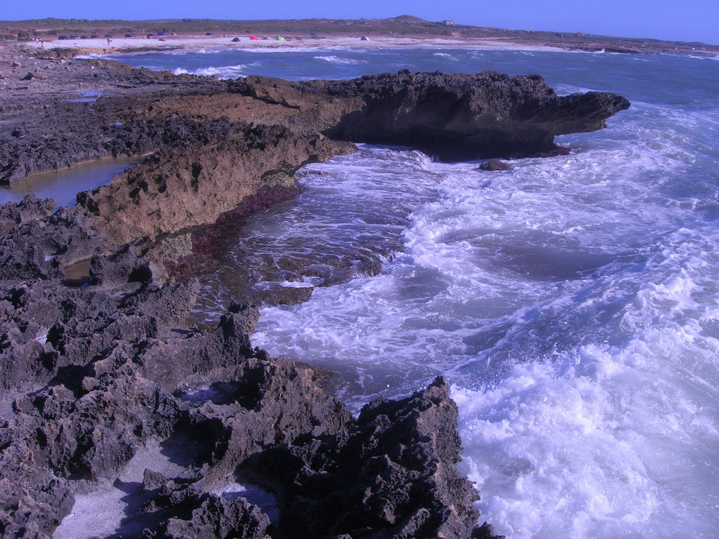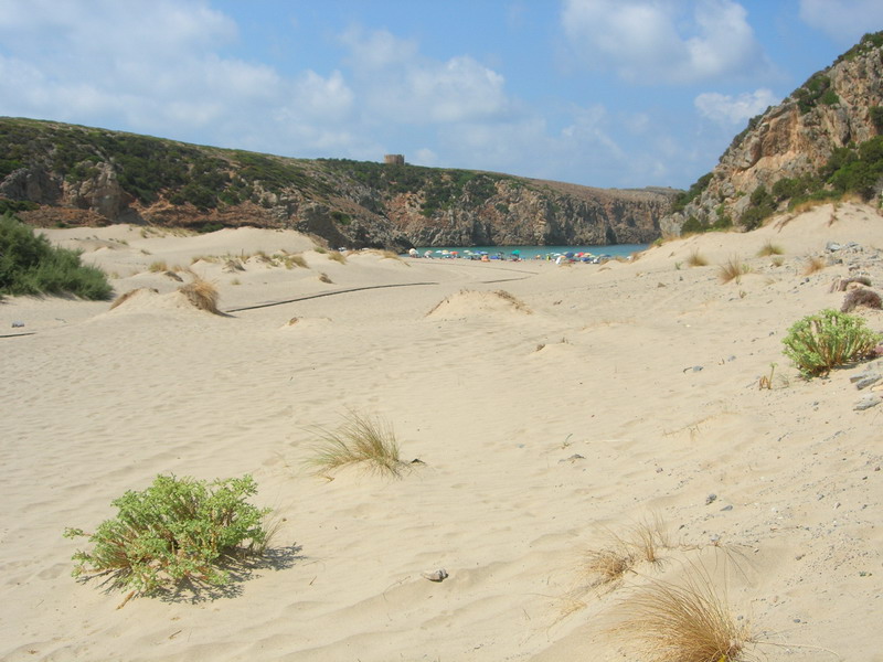 Saliamo più a nord e solo di sfuggita riusciamo a vedere cala domestica. Veramente fantastica. Forse una delle più belle spiaggette viste finora, incastonata tra alte pareti rocciose. Ci rimaniamo si e no 20 minuti senza nemmeno fare il bagno. Sigh... e ripartiamo.. Passata Buggerru (non ci ha impressionato molto) e ci dirigiamo alla tanto declamata Piscinas. |
