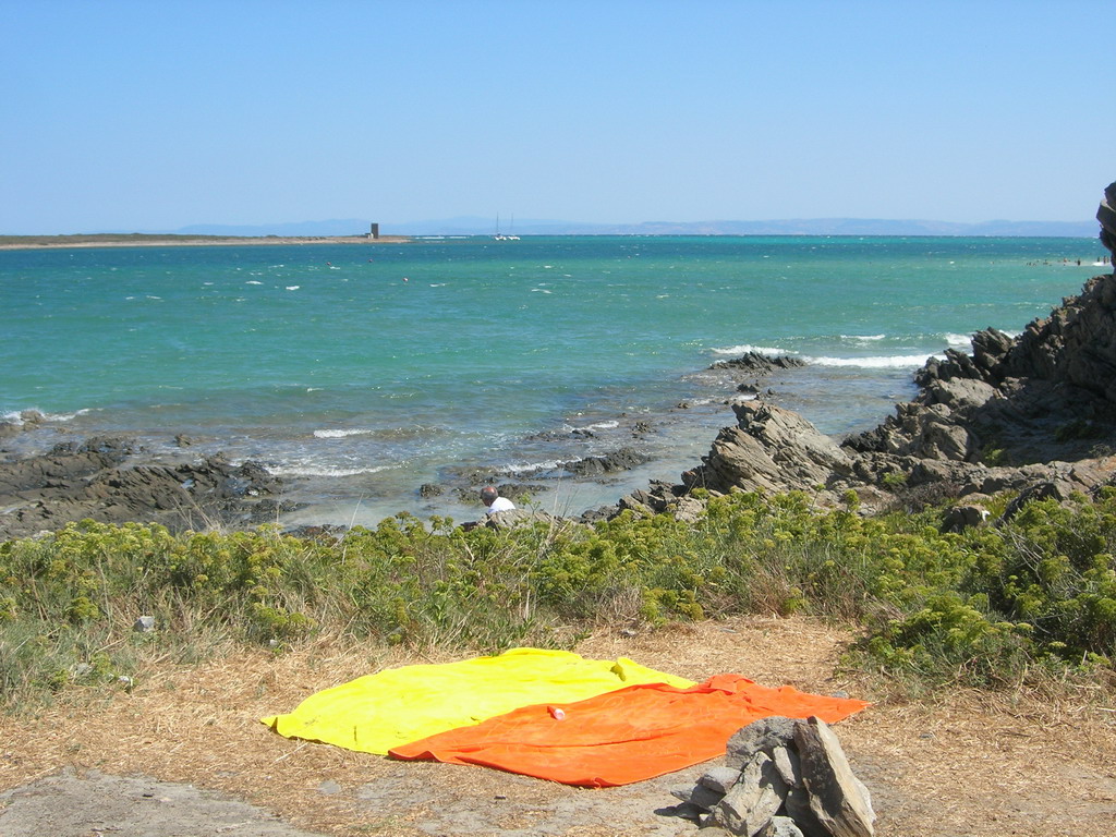 spiaggia che fronteggia l'isola su Giudeu. E' questa l'ultima foto che riesco a fare. La mia fida machinetta decide di smettere di funzionare. Sarà la batteria? Sarà il caricabatterie? Sarà prorpio la macchina? Boh... d'ora in poi mi affidero ad Anka e le chiederò l'uso della sua macchina fotografica se vedrò qualche inquadratura che lei non ha già immortalato. |