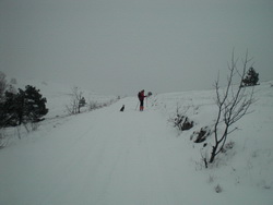 Arriviamo all'incrocio sopra Gabrce e partiamo sci ai piedi alle 16.00